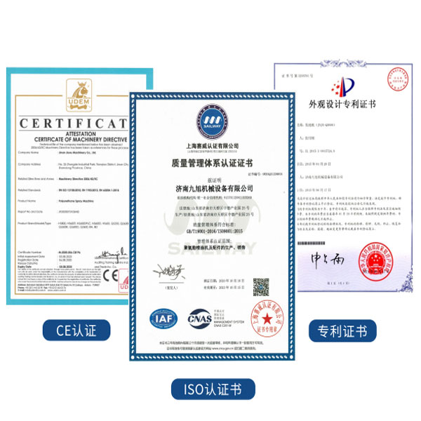 山東九旭機械科技有限公司歷經(jīng)十幾年的發(fā)展,已成長為聚氨酯設備行業(yè)頗具實力的設備制造業(yè)之一。企業(yè)主要產(chǎn)品:聚氨酯高壓噴涂機、聚氨酯發(fā)泡機、聚氨酯噴涂機、聚脲設備、聚氨酯發(fā)泡設備、聚氨酯發(fā)泡機等關于設備配件(聚氨酯高壓噴槍、槍嘴、加熱管道、料塊、摩擦副、增壓泵、混合式、提料泵等)也是堅持最好的質(zhì)量服務用戶,并承接:外墻保溫、冷庫保溫發(fā)泡等工程。山東九旭機械科技有限公司已通過ISO9001:2015質(zhì)量管理體系認證和國家高新技術企業(yè)認證,目前山東九旭機械設備已領跑中國聚氨酯設備行業(yè),成為廣大客戶之首選。